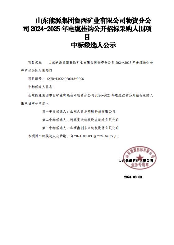 山東能源集團魯西礦業2024-2025年電纜掛鉤項目中標